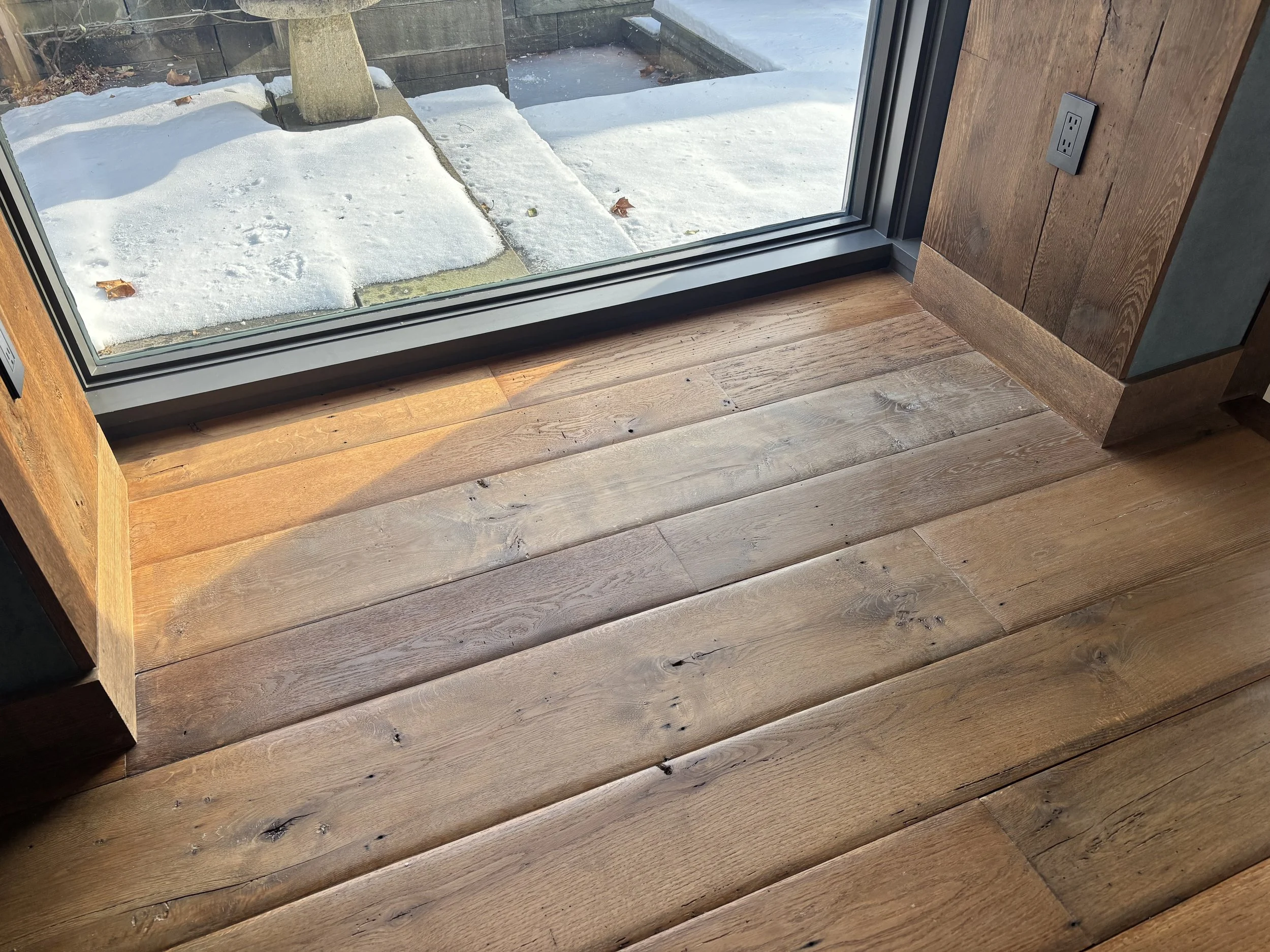 Miller Residential removed the older carpeting and put down 2 1/4" thick unfinished red oak hardwoods to dramatically update the look of the home.
